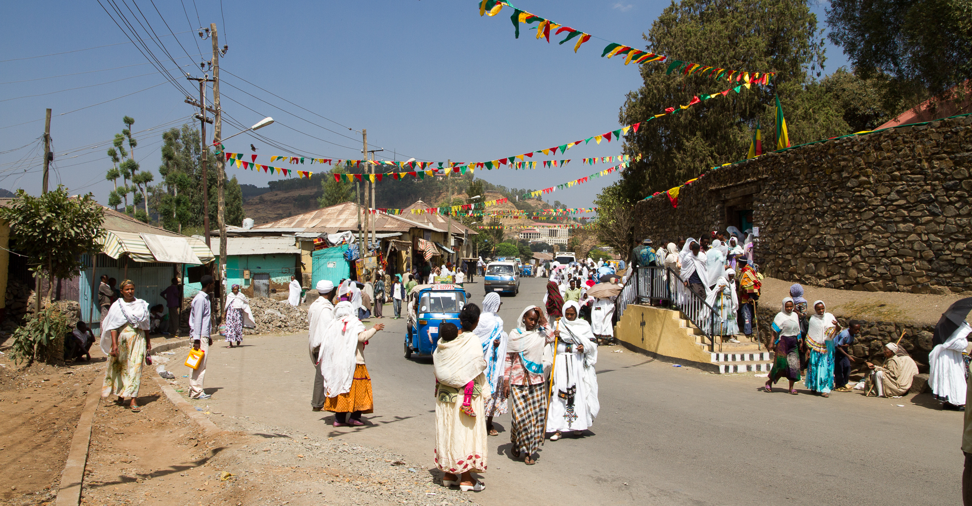 We hadden gehoord dat het die zondag de jaarlijkse viering van Saint George zou zijn, een belangrijk feest in Ethiopië, omdat St. George de beschermheilige van het land is. We besloten daarom de St. George kathedraal in Bahir Dar te bezoeken, en deze viering mee te maken. Dit was een prachtige mis, en het gaf ons een kijkje in hoe het Ethiopisch Orthodoxe geloof wordt beleeft, en dat is met veel meer vrolijkheid dan wij kennen vanuit Nederland.
