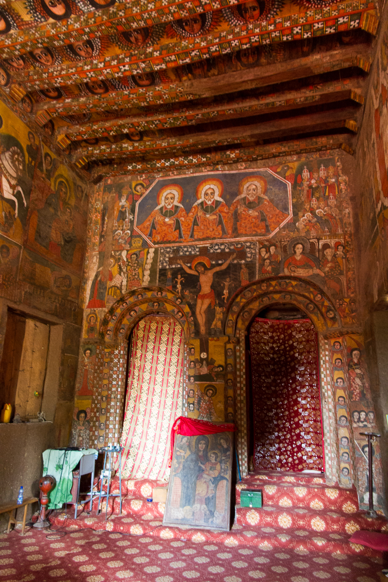 Vanuit Bahir Dar zijn we verder om Lake Tana heen gereden, met als bestemming Gorgora. Dit is een klein plaatsje aan de noord kant van het meer, en hier hebben twee Nederlandse vrienden van Ronald, Tim en Kim, een lodge/ camping. We vonden het erg leuk dat je hier ook kanotochten op het meer kon maken, dus dat hebben we natuurlijk gedaan! Ook aan deze kant van het meer zijn er eilandjes met kloosters, erg grappig om te zien hoe de monikken met lokale kano’s tussen de kloosters en het vaste land peddelen. Het schijnt dat ze zo af en toe zelfs koeien vervoeren! Daarnaast staat er in deze plaats uiteraard ook weer een kerk die de moeite van het bezoeken waard is, te weten de Debre Sina Mariam kerk.