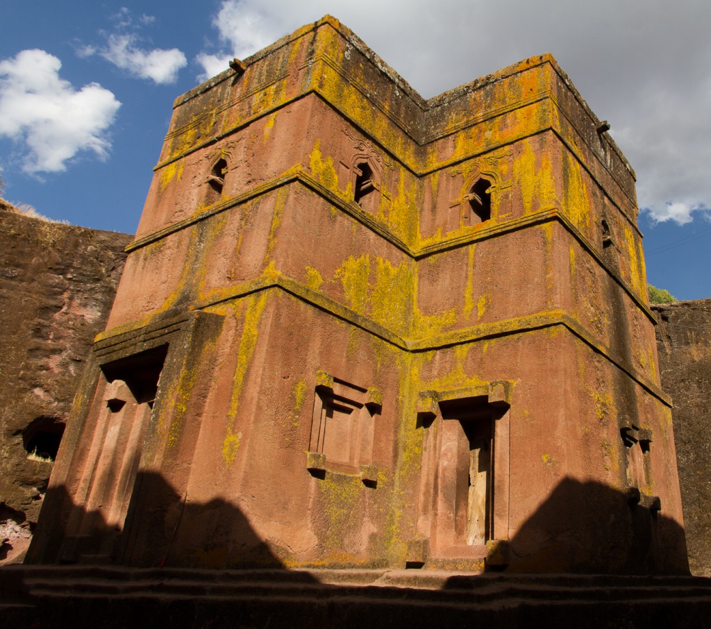 Onze volgende bestemming was Lalibela. Dit is een klein dorpje in de bergen, dat vroeger Roha heette. Koning Lalibela had hier zijn zetel, en bij terugkeer van een bezoek aan Jeruzalem besloot hij om van Lalibela een nieuw ‘Jeruzalem in Ethiopie’ te maken. Om dit doel te realiseren werden er kerken uit de rotsen gehouwen, 11 in totaal. Volgens zeggen werden al deze kerken in slechts 24 jaar tijd volledig uit de rotsen gehouwen, het is enorm indrukwekkend om dit fenomeen te bezichtigen. Veel van de kerken zijn door donkere gangen met elkaar verbonden, en het is een waar labyrint. De kerken zijn allen nog steeds in gebruik, al zijn er een aantal die door de aardbevingen en andere invloeden erg kwetsbaar zijn geworden. De meesten zijn inmiddels door de Unesco van (erg lelijke) beschermende overkappingen voorzien, maar als je die even wegdenkt, en je mee laat voeren door de slagen van de trommels en het gezang van de priesters, dan is het – nog steeds- een magische plek.
