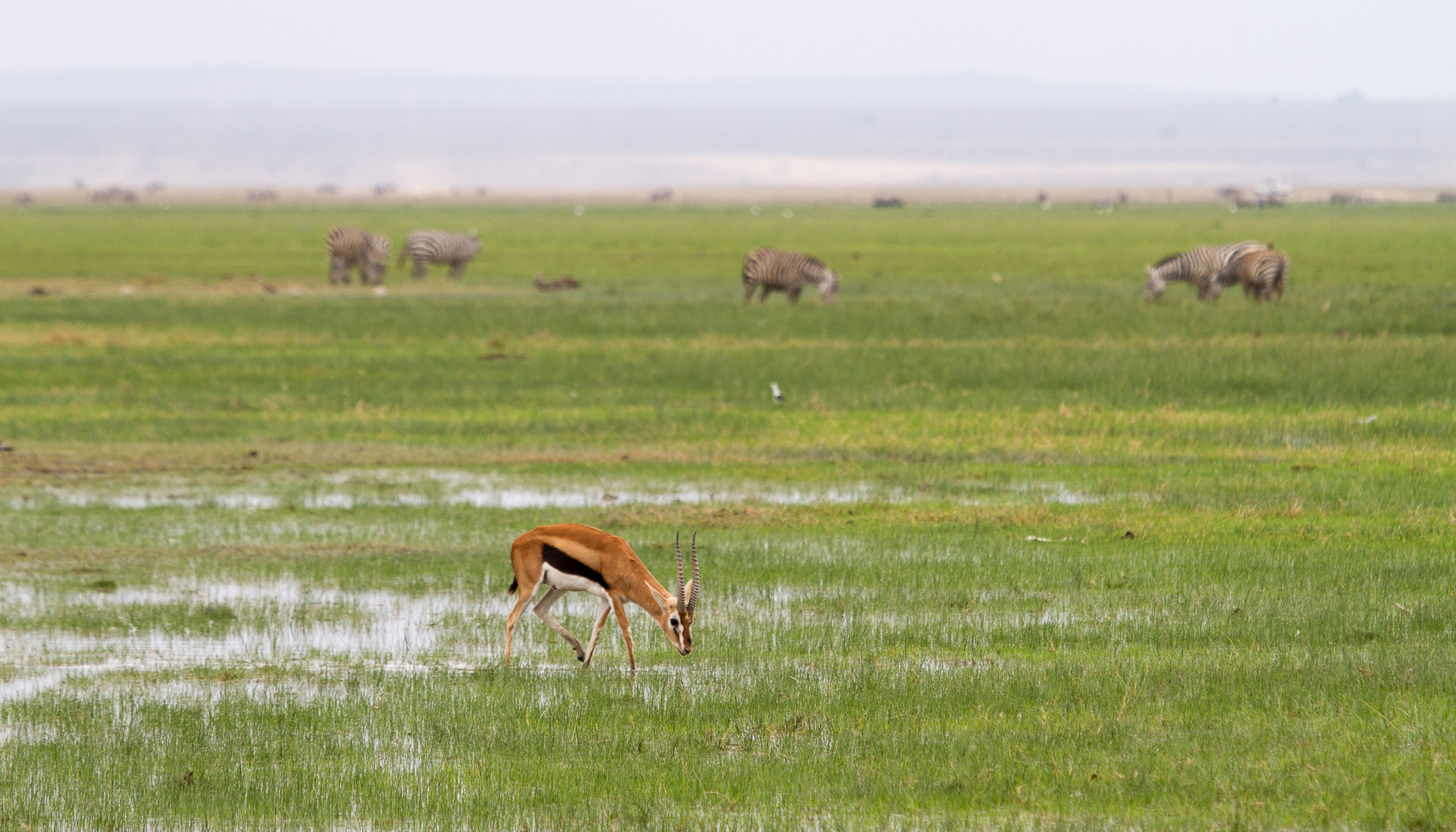 Amboseli is vooral bekend vanwege de moerassen, en zelfs als de rest van het park (en Kenia)droog wordt zijn er altijd stukken die onder water staan waar de dieren graag heen komen voor wat verkoeling en vers gras.